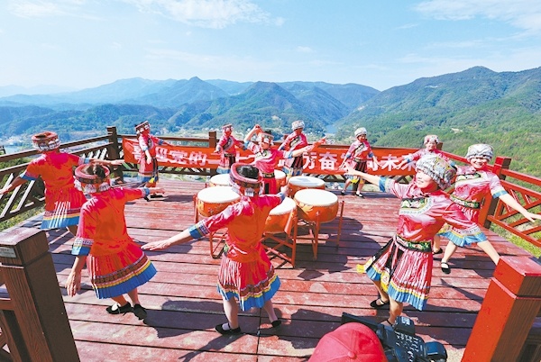 10月16日,松滋市卸甲坪土家族乡群众载歌载舞喜庆党的二十大胜利召开。 (视界网 杨松刚 摄)